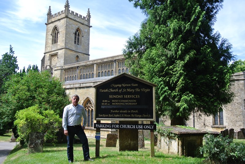 July 2013 Trip to Chipping Norton Wikipedia: About Chipping Norton I had wanted to travel to Chipping Norton ever since I read the Averill Books at my Grandparents' house, as a child. As it turns out, my wife was born a few miles from Oxford and Chipping Norton, when her father was stationed at RAF Brize Norton in the early 50’s. Last spring, I learned that my son was enrolling in a summer semester at Oxford University. The timing coincided with a major WWII Air Show at Duxford, UK. All of a sudden we had several great reasons to plan our trip to the Cotswold area of England. In the months before the trip, we exchanged multiple emails, concerning our Averill ancestors from the 1630s, with Chipping Norton Museum with volunteer, Dave, and local historian, Alan. Both are very familiar with Clara Avery and subsequent Averill | Averell research. We met at the Museum, followed by lunch and a walking tour of town, then on to St. Mary's The center of the town retains much of what would have been there in 1635. The word “Chipping” means ‘market’, and “Norton” means ‘north’, hence, Chipping Norton was the northern market of the region. Aerial Photo #1 http://goo.gl/maps/VsZnj Aerial Photo #2 http://goo.gl/maps/hEXdx Aerial Photo #3 http://goo.gl/maps/t7mf9 St. Mary The Virgin - Church History We spent over an hour in St. Mary The Virgin Church. We saw the plaque on the wall, which we assume, Clara Avery arranged to be placed in the church in 1928. From a document we received, it appears that Clara made a sizeable donation for the restoration for a portion of the churce, and the placement of a new altar. Immigration records show that Clara made several trips to England and other places in Europe. It is clear that she had the financial where with all to make this type of generous donation. From the Averills' wills, we know that they were buried in the church yard, however, no monuments remain. Just as we know that William was buried in the "Old Burying Ground" in Ipswich, no momument has survived there either. During our time in The Cotswolds, we visited numerous church yards. One thing which was apparent, is that headstones made from the local limestone, very seldom survived more than 150 years. Another interesting fact is that during the religious upheaval that coincided with William's departure, most of the churches were stripped of stained glass windows and other ornate religious items, believed by the Puritans to be counter to the